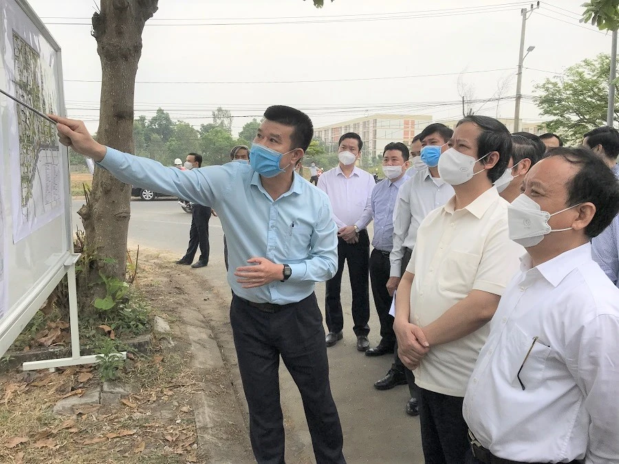 Bộ trưởng Bộ GD&ĐT Nguyễn Kim Sơn đi kiểm tra Dự án Làng ĐH Đà Nẵng. Ảnh: TA