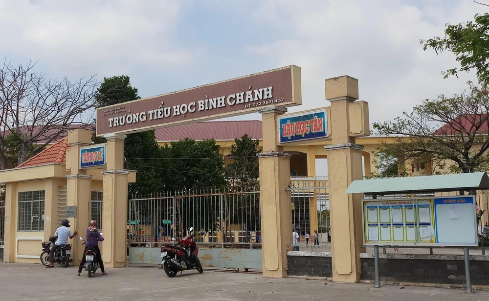 Trường ttểu học Bình Chánh, Bến Lức, Long An, nơi xảy ra sự việc phụ huynh bắt giáo viên phải quỳ trong 40 phút. Ảnh: NGUYỄN QUYÊN