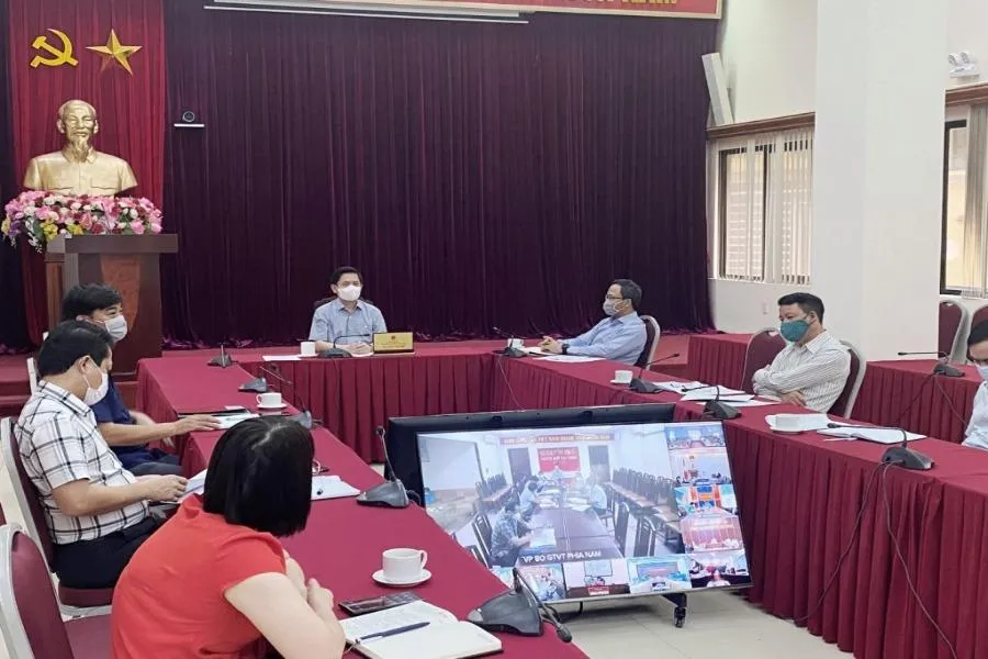 Bộ trưởng Nguyễn Văn Thể chỉ đạo cuộc họp trực tuyến chiều 23-7. Ảnh: V.DŨNG