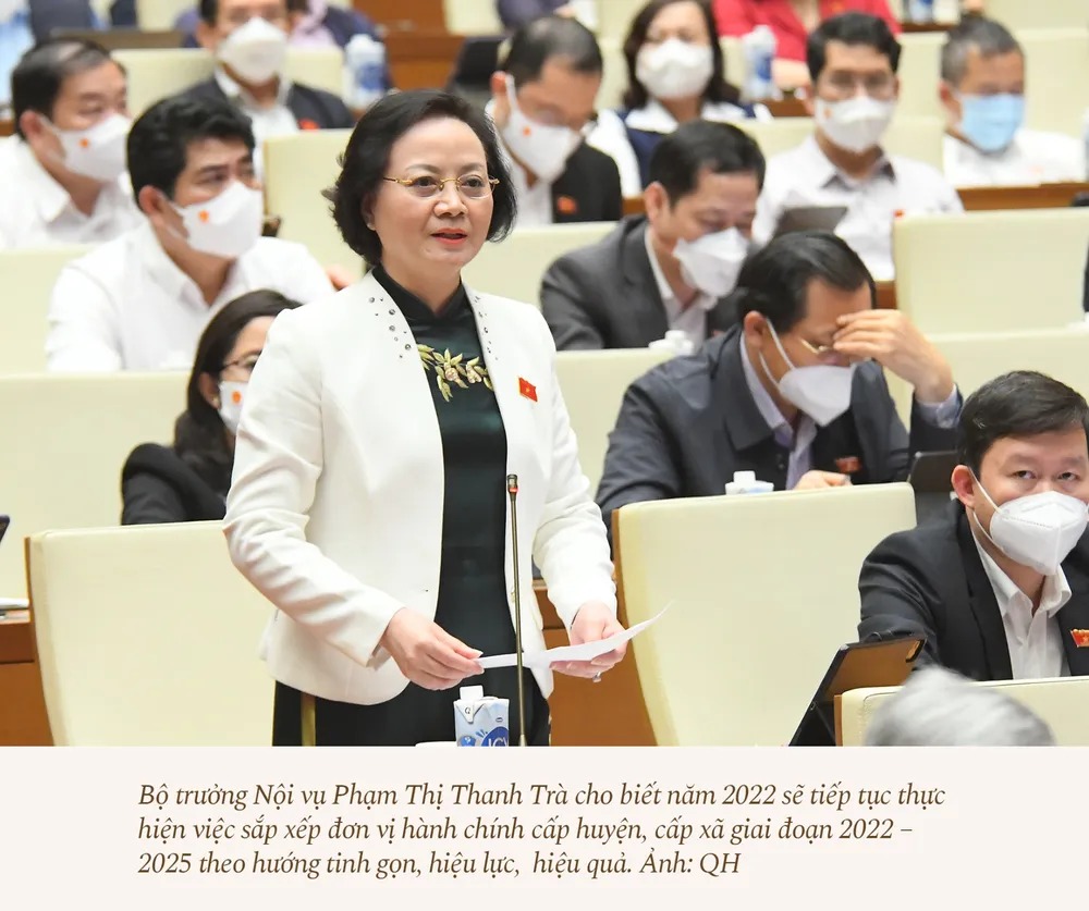+ Năm 2022, nhiệm vụ đầu tiên chúng tôi đặt ra là nâng cao hơn nữa chất lượng công tác xây dựng và hoàn thiện thể chế, chính sách phù hợp yêu cầu kiến tạo, phát triển và quản trị của nền hành chính nhà nước các cấp, nhất là tổ chức bộ máy chính quyền địa phương, đặc biệt là cấp xã.