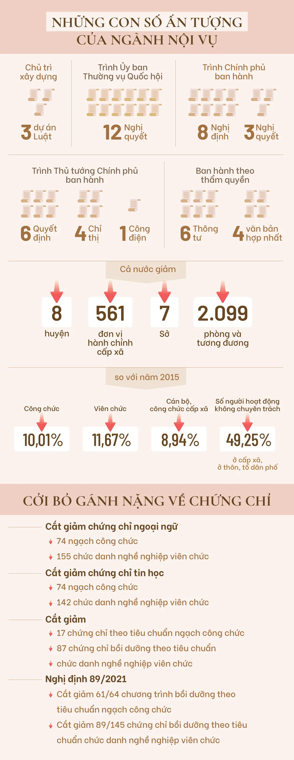 . Trong năm, Bộ Nội vụ đã rà soát, đề xuất Chính phủ cắt giảm chứng chỉ ngoại ngữ, tin học và hàng loạt chứng chỉ bồi dưỡng khác đối với công chức, viên chức, được dư luận hoan nghênh.