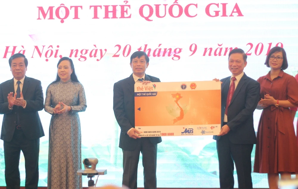 Bộ trưởng Nguyễn Thị Kim Tiến chứng kiến trao mẫu thẻ được công bố tại hội nghị.