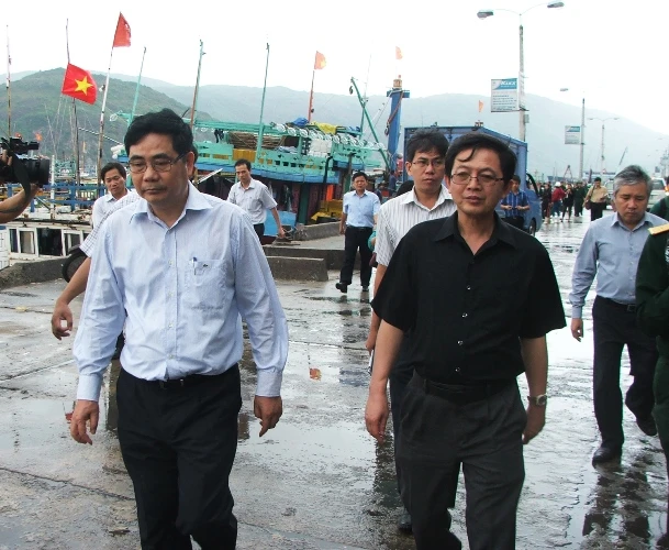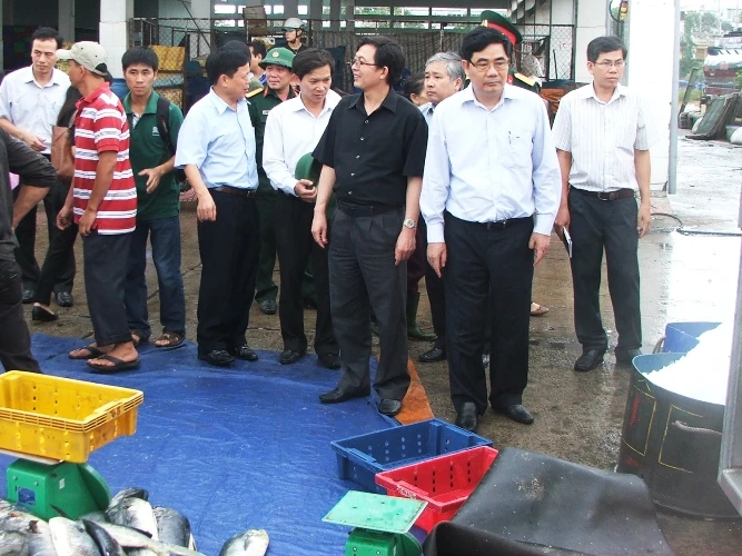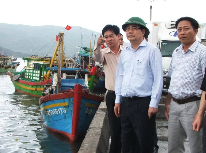 Sáng cùng ngày, Bộ trưởng Cao Đức Phát đã đến kiểm tra tình hình neo đậu tàu thuyền tránh bão tại cảng cá Quy Nhơn.