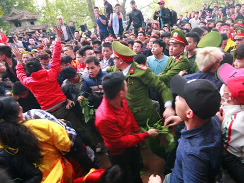 Công an giữ gìn an ninh trật tự tại lễ hội đền Gióng (Hà Nội). Ảnh: Đình Hiếu