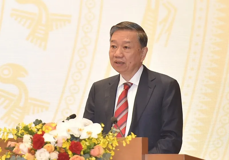 Bộ trưởng Bộ Công an Tô Lâm phát biểu tại hội nghị. Ảnh: VGP