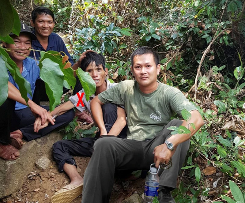 Nhóm thợ rừng hỗ trợ công an bắt nghi phạm giết người đang trốn giữa rừng sâu (dấu X) (Ảnh: cơ quan công an cung cấp)