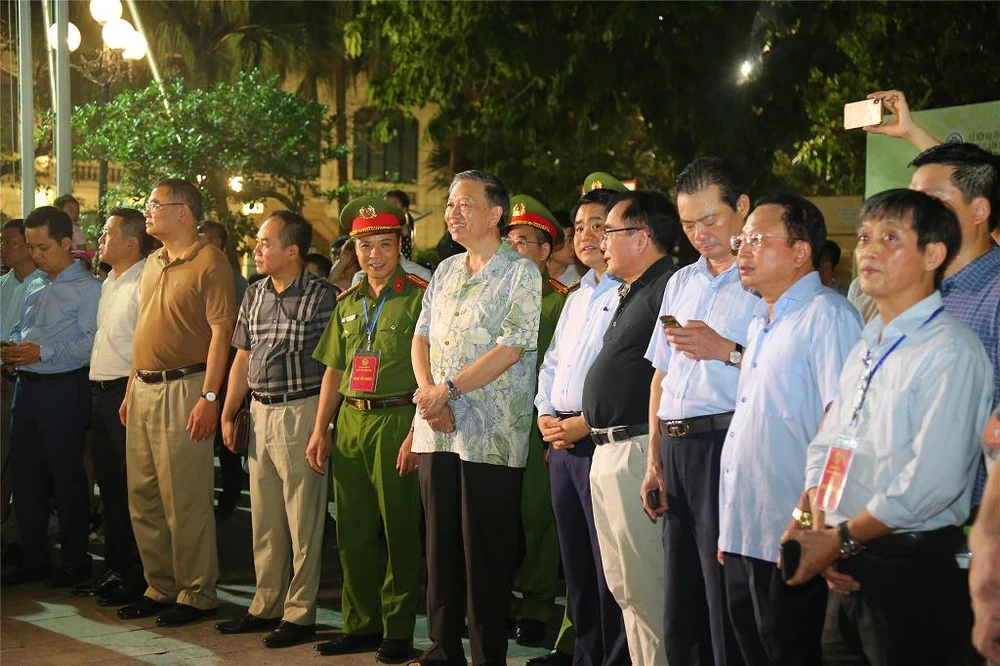 Đại tướng Tô Lâm, Bộ trưởng Bộ Công an; ông Nguyễn Đức Chung, Chủ tịch UBND TP Hà Nội, cùng nhiều quan chức đến xem và thưởng thức. Ảnh: Bộ Công an