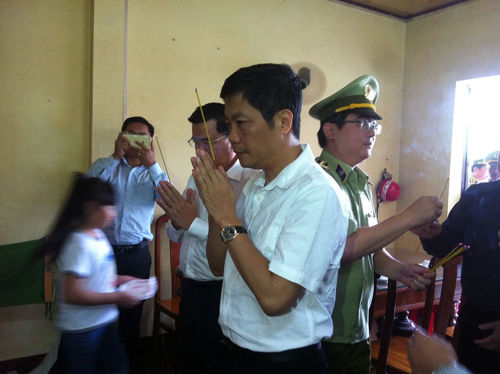 Bộ trưởng cùng đoàn thắp nhang chia buồn