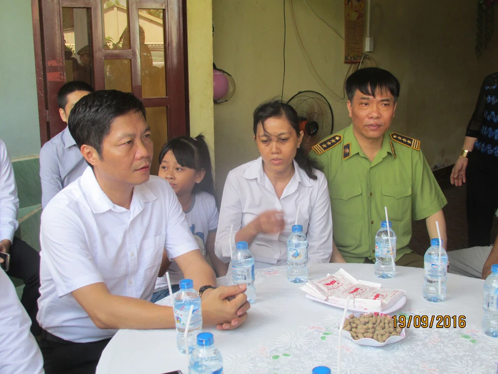 Bộ trưởng hỏi thăm, động viên chị Nhan Thị Thùy Trân, vợ anh Danh