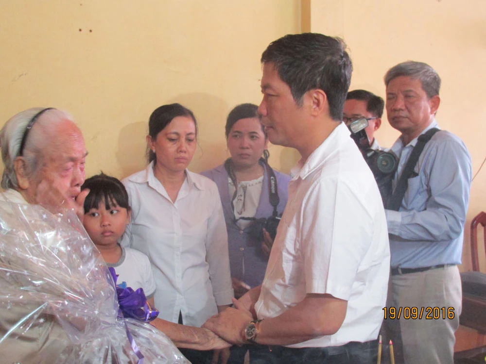 Bộ trưởng hỏi thăm bà Võ Thị Nơ (80 tuổi), mẹ anh Nguyễn Kim Danh