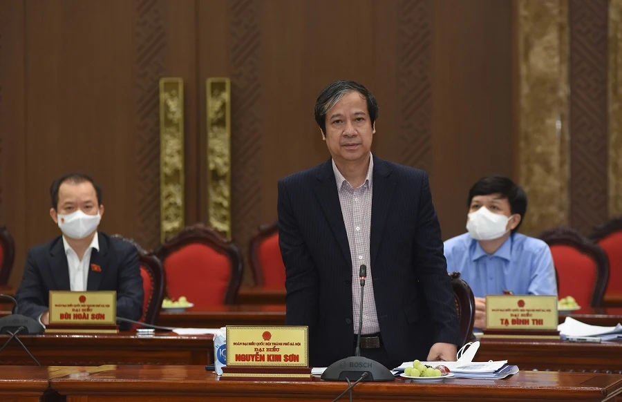 Tại cuộc làm việc này, Bộ trưởng GD&ĐT Nguyễn Kim Sơn (Đoàn ĐBQH TP Hà Nội) góp ý, TP Hà Nội nên tính đến chiến dịch giáo dục và kế hoạch điều tiết lại đời sống tinh thần cho người dân để thích ứng với dịch bệnh trong tình hình mới.