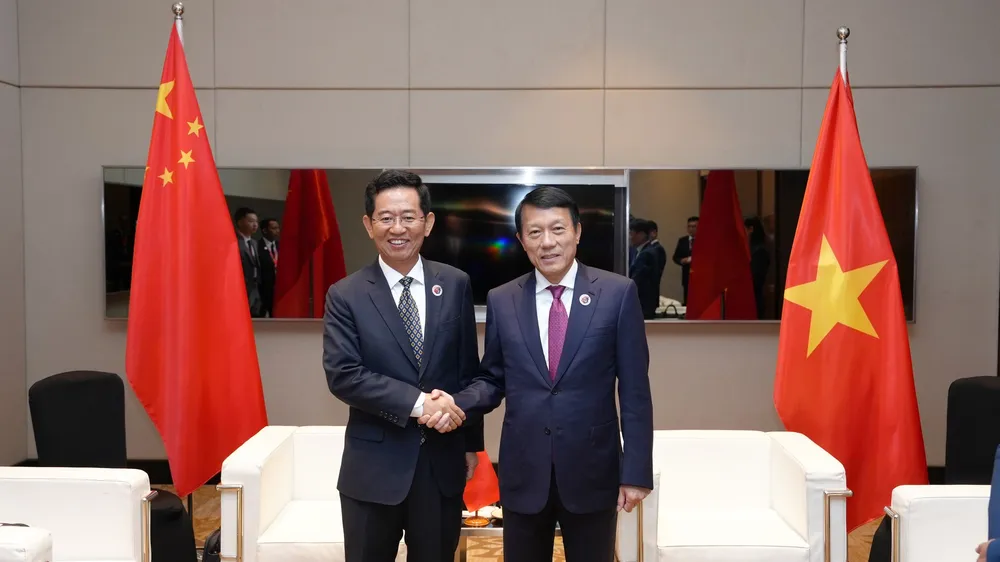 Bộ trưởng Lương Tam Quang và Thứ trưởng Bộ Công an Trung Quốc Vương Chí Trung tại cuộc gặp bên lề Hội nghị.