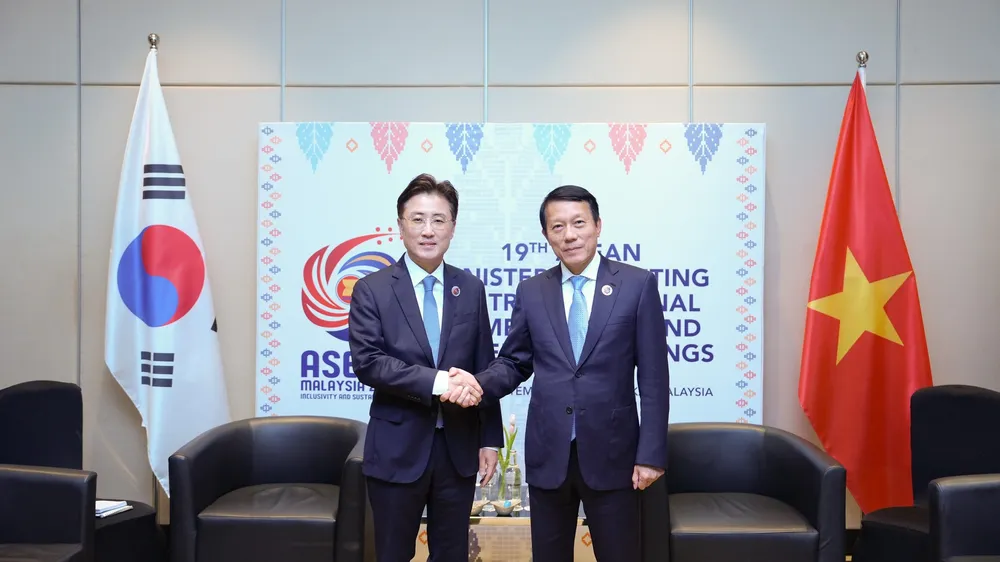 Bộ trưởng Lương Tam Quang và Thứ trưởng Bộ Tư pháp Hàn Quốc Lee Jin-soo tại cuộc gặp bên lề Hội nghị.