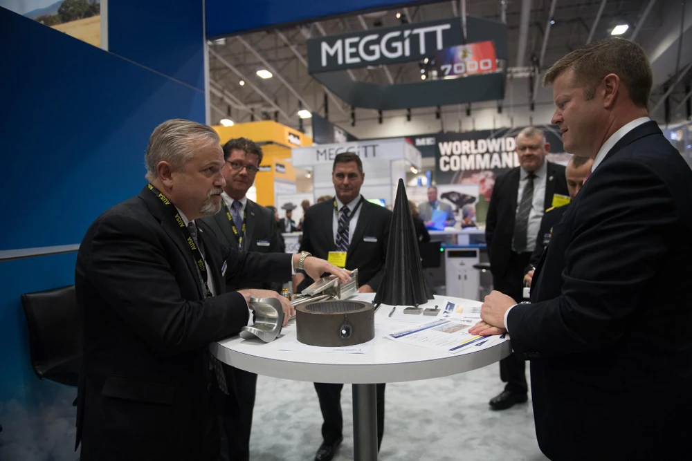 Bộ trưởng Lục quân Mỹ Ryan McCarthy (phải) đứng cạnh mô hình được cho là của tên lửa siêu thanh do Lockheed Martin sản xuất. Ảnh: FLICKR