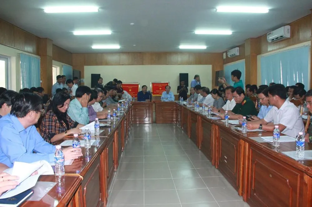 Đoàn công tác có buổi làm việc với lãnh đạo UBND huyện và các ban, ngành để lên phương án phòng chống bão số 9.