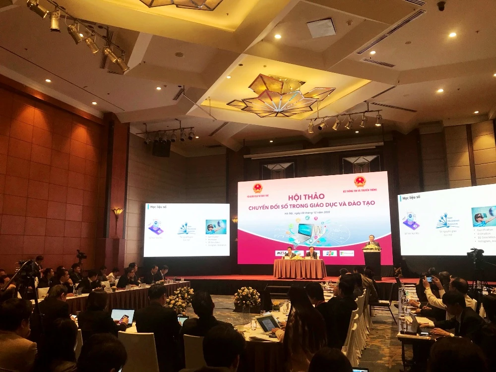 Ngày 9-12, tại Hà Nội, Bộ trưởng Bộ GD&ĐT Phùng Xuân Nhạ và Bộ trưởng Bộ TT&TT Nguyễn Mạnh Hùng đã cùng chủ trì Hội thảo chuyển đổi số trong giáo dục và đào tạo.