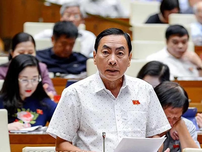 Đại biểu Phạm Văn Hòa (Đồng Tháp) phát biểu tại hội trường không đồng tình giữ hình thức kỷ luật giáng chức. Ảnh: TP