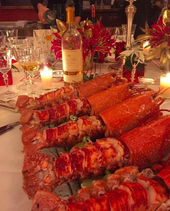 Bức ảnh tôm hùm và rượu vang bùng nổ trên mạng Internet, khiến dư luận Pháp bất bình. Ảnh: Mediapart.