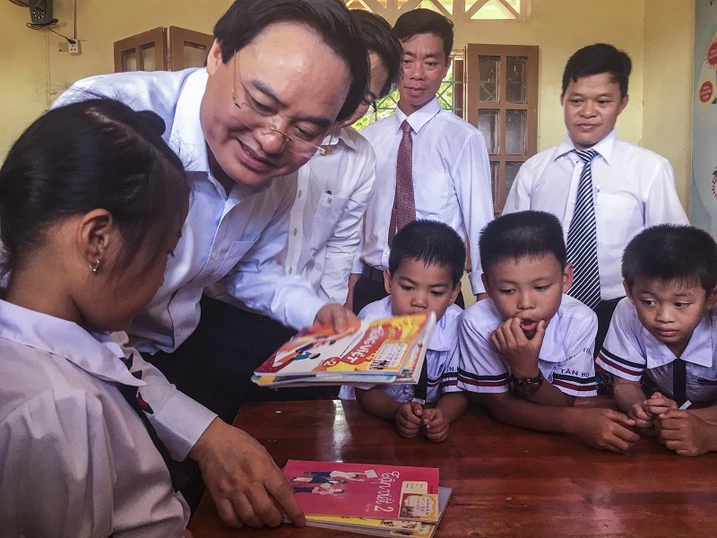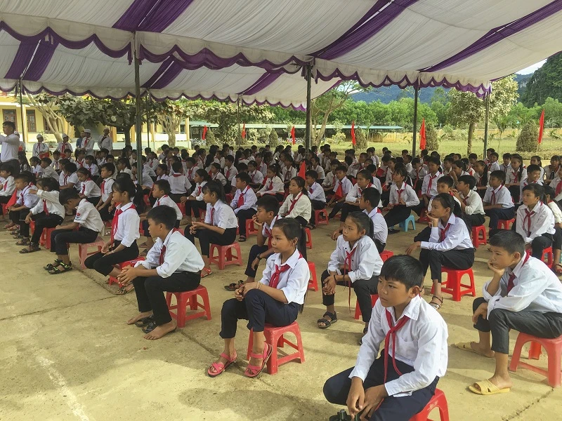 Sáng 11-9, Bộ trưởng Bộ GD&ĐT Phùng Xuân Nhạ đã đến dự lễ khai giảng năm học mới tại Trường THCS Tân Hóa của huyện miền núi Minh Hóa, tỉnh Quảng Bình.