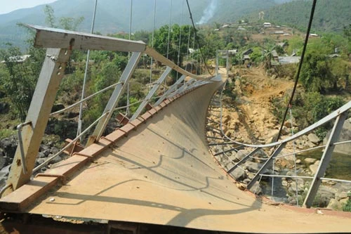 Cầu Chu Va bị đứt cáp treo, nghiêng hẳn sang một bên
