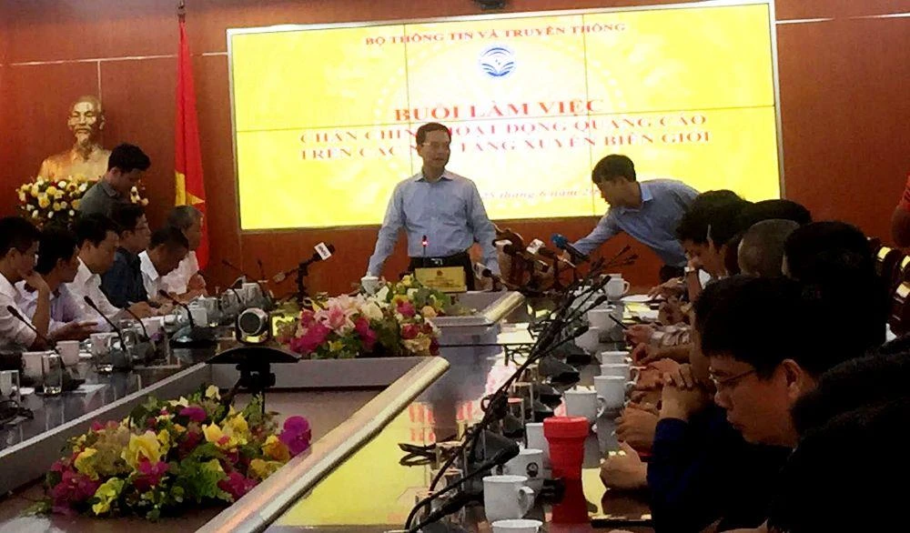Bộ trưởng Bộ Thông tin và Truyền thông (TT&TT) Nguyễn Mạnh Hùng phát biểu chiều 25-6 sau khi lắng nghe ý kiến của nhiều đơn vị và doanh nghiệp tại buổi làm việc chấn chỉnh hoạt động quảng cáo trên các nền tảng xuyên biên giới như trên.