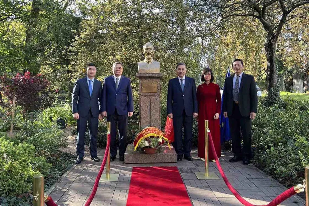Trong thời gian công tác tại Pháp, Đại tướng Tô Lâm, Ủy viên Bộ Chính trị, Bộ trưởng Công an cùng Đoàn đại biểu cấp cao Bộ Công an Việt Nam đã đến đặt vòng hoa tại tượng đài Chủ tịch Hồ Chí Minh trong Khu tưởng niệm Hồ Chủ tịch ở thành phố Montreuil, ngoại ô Thủ đô Paris, Pháp. Vòng hoa mang dòng chữ “Đảng ủy Công an Trung ương - kính viếng”.