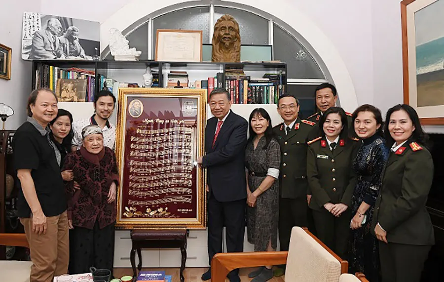 Ngày 29-1, Đại tướng Tô Lâm, Uỷ viên Bộ Chính trị, Bộ trưởng Bộ Công an đã đến thăm, chúc Tết gia đình cố nhạc sĩ Văn Cao.