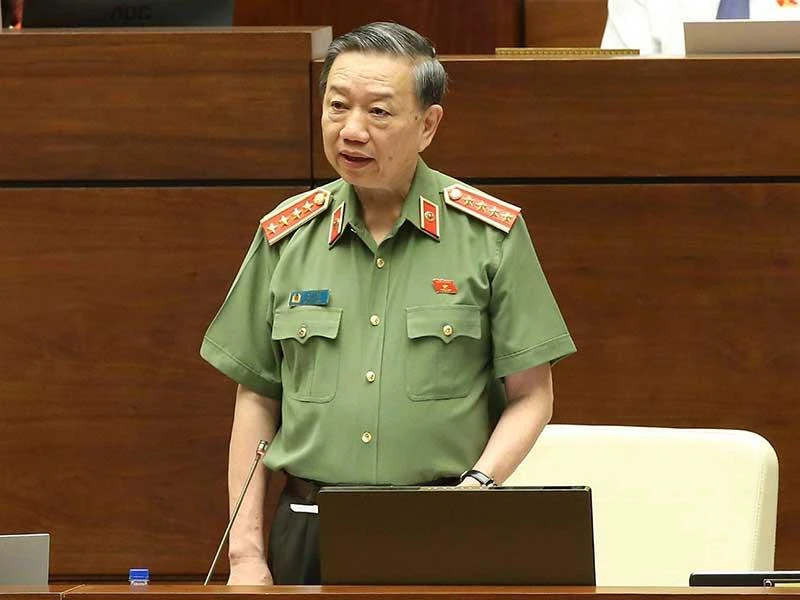 Bộ trưởng Bộ Công an Tô Lâm trả lời chất vấn. Ảnh: TTXVN