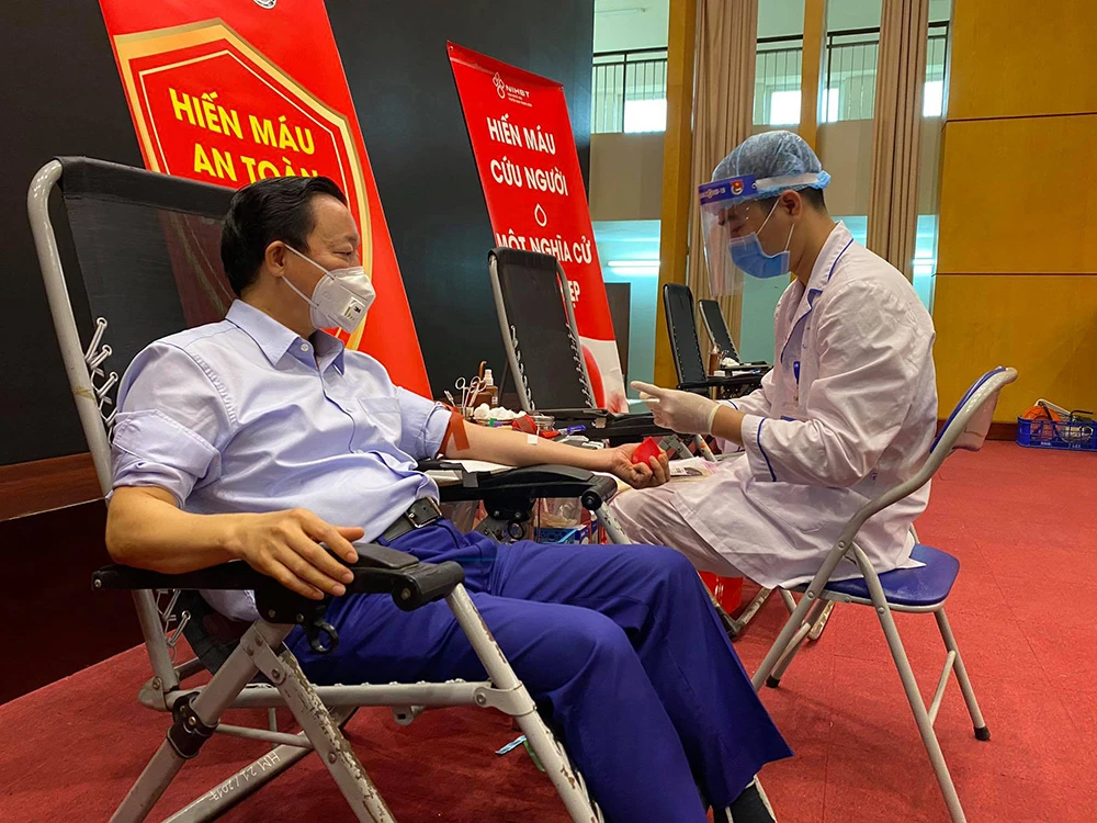 Tham gia hiến máu có Bộ trưởng Trần Hồng Hà, các thứ trưởng và toàn thể cán bộ, nhân viên của Bộ TN&MT. Tất cả mọi người tham gia hiến máu đều đeo khẩu trang, cố gắng giữ khoảng cách tiếp xúc tối thiểu 2 m, khẩu trang, nước sát khuẩn được bố trí nhiều nơi.