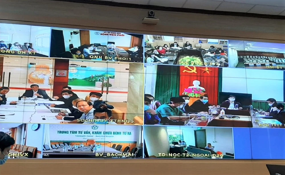 Bộ trưởng Bộ Y tế họp trực tuyến với các bệnh viện dã chiến tại Hải Dương. Ảnh: TP