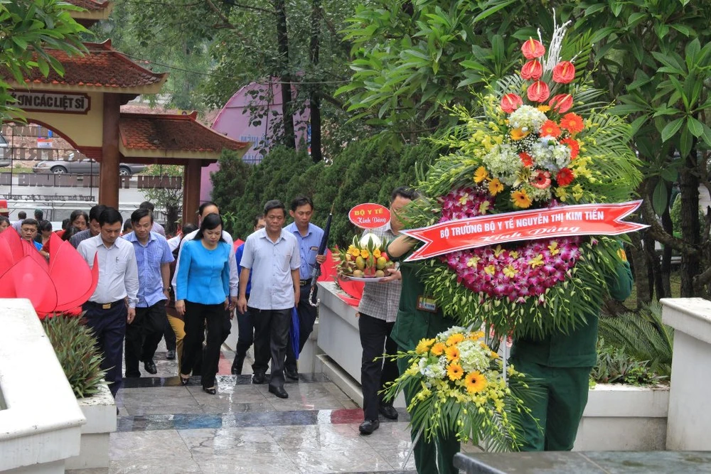 Trước khi tham dự chương trình khám, tư vấn, cấp phát thuốc miễn phí và tặng quà cho thương binh, gia đình liệt sĩ, Bộ trưởng Nguyễn Thị Kim Tiến cùng Đoàn công tác và các đồng chí lãnh đạo ngành y tế Hà Tĩnh đã đến dâng hương tưởng niệm tại khu di tích lịch sử ngã 3 Đồng Lộc.