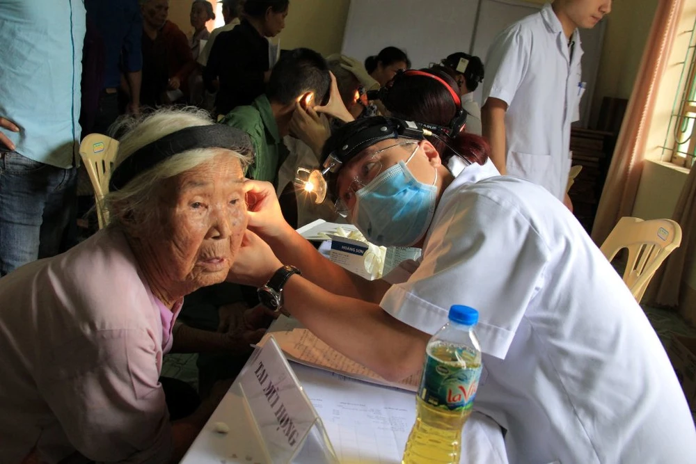 Các bác sĩ thăm khám miễn phí cho bà con Hà Tĩnh.