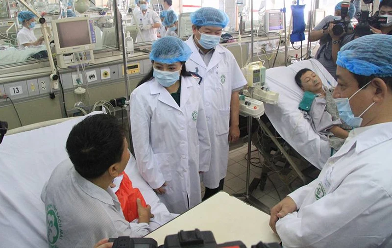Ngày 30-5, Bộ trưởng Nguyễn Thị Kim Tiến thăm các bệnh nhân đang cấp cứu tại BV Bạch Mai (Hà Nội).