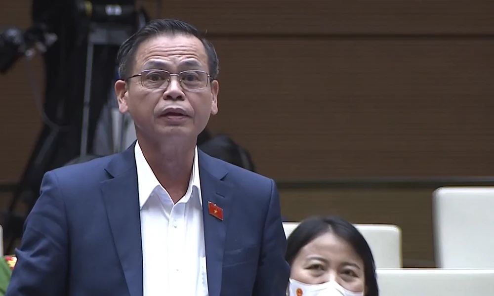 ĐB Trần Hữu Hậu (Tây Ninh) đề nghị Bộ trưởng Nguyễn Thanh Long khẳng định tính an toàn đối với sức khỏe sinh sản của vaccine tiêm cho trẻ 12-17 tuổi . Ảnh: CL