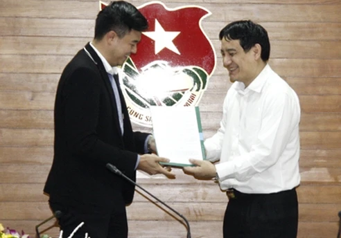 Bí thư thứ nhất TƯ Đoàn Nguyễn Đắc Vinh trao quyết định bộ nhiệm giữ chức Phó trưởng Ban Tuyên giáo Trung ương Đoàn cho Thiếu tá Phan Tuấn Tú (MC Tuấn Tú)