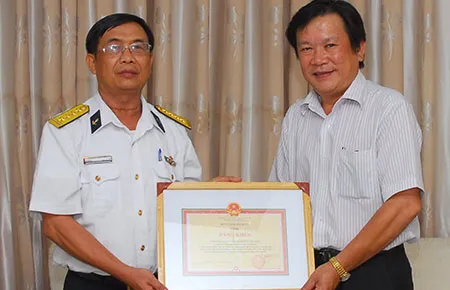 Bộ Tư lệnh Hải quân trao tặng bằng khen cho báo Pháp Luật TP.HCM nhân ngày Báo chí cách mạng Việt Nam (21-6-2014). Ảnh: HTD