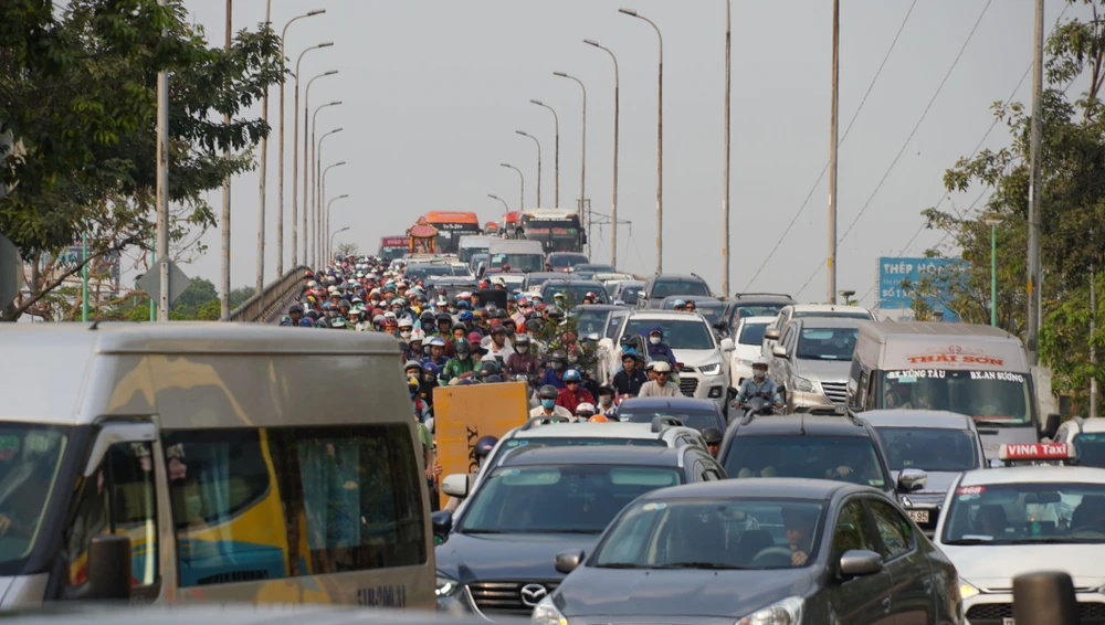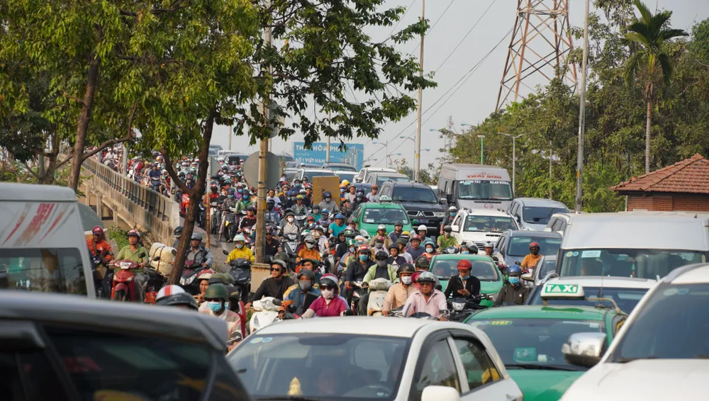 Hàng ngàn người chen chân trên cầu Bình Triệu về Bến xe Miền Đông.