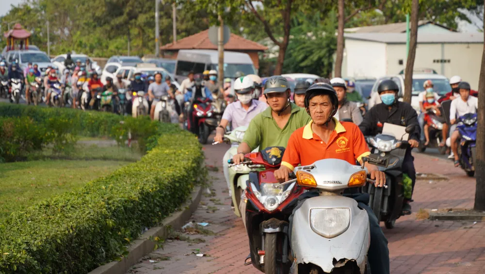 Nhiều tuyến đường về miền Tây hiện đang kẹt xe vì khá đông người dân chọn phương án đi xe máy về quê ăn tết nên nhiều xe bị chậm trong việc quay vòng.