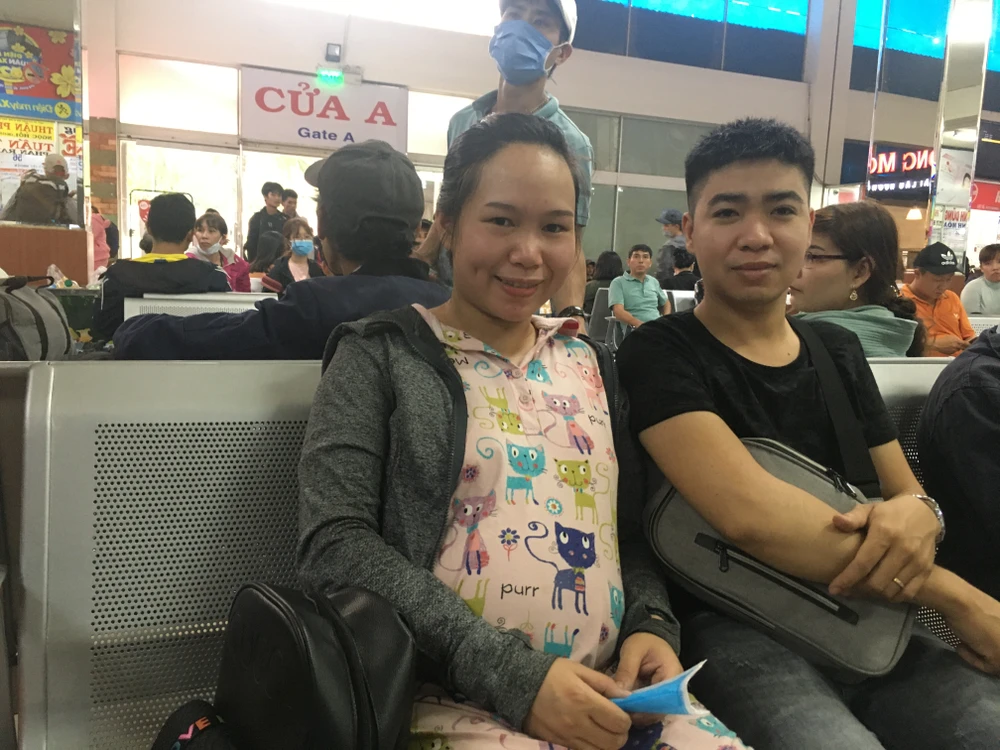 Chị Phạm Thị Mai và chồng ra bến xe từ nhiều giờ trước.