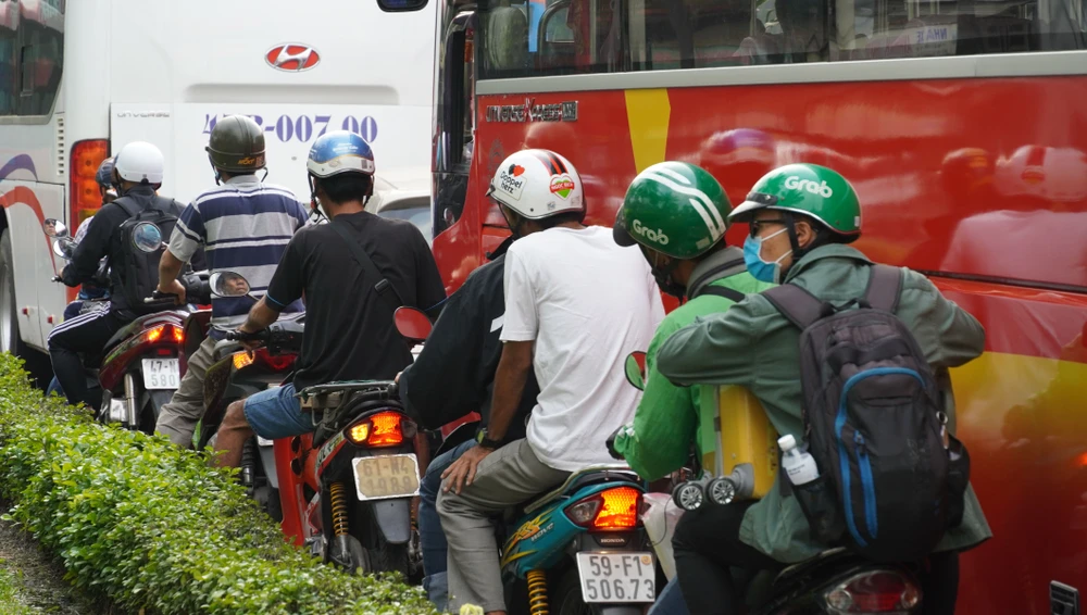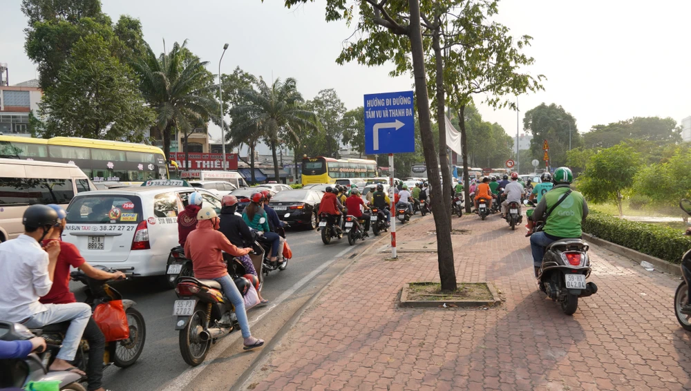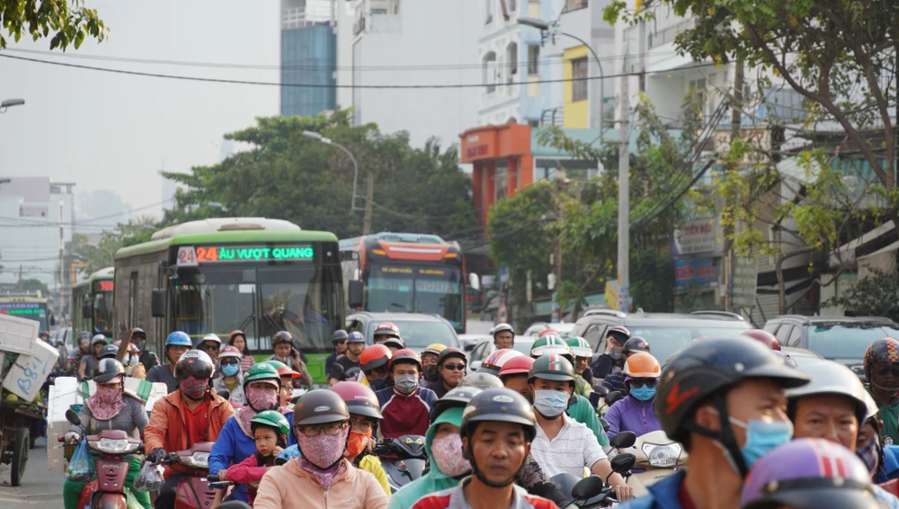 Lượng xe bắt đầu ùn ứ từ khoảng 16-17 giờ tại đường Đinh Bộ Lĩnh, Xô Viết Nghệ Tĩnh, quốc lộ 1A... hướng về Bến xe Miền Đông.