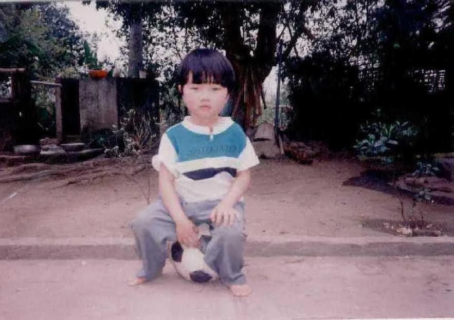 Ảnh hồi nhỏ của Xuân Trường với quả bóng thân thuộc.