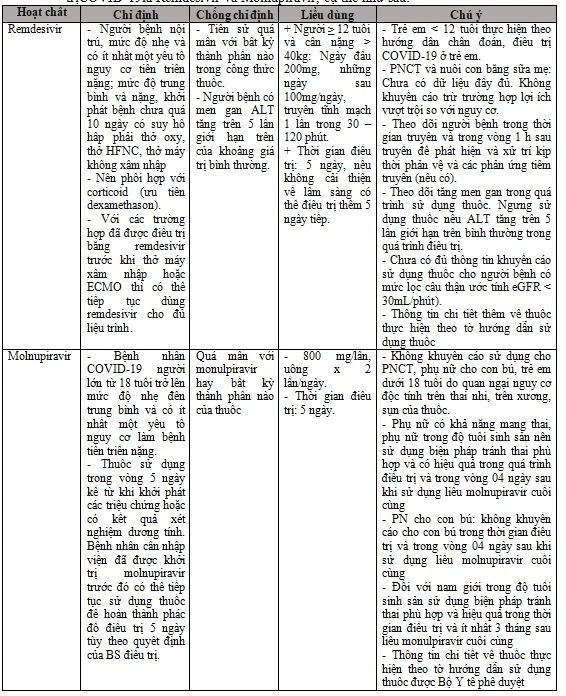 Bổ sung hướng dẫn sử dụng của 02 loại thuốc kháng virus là Remdesivir và Molnupiravir, cụ thể như sau:
