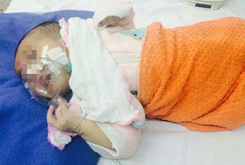 Một trường hợp ho gà biến chứng suy hô hấp đang điều trị tại khoa Hô hấp, Bệnh viện Nhi Trung Ương. Ảnh: BVCC