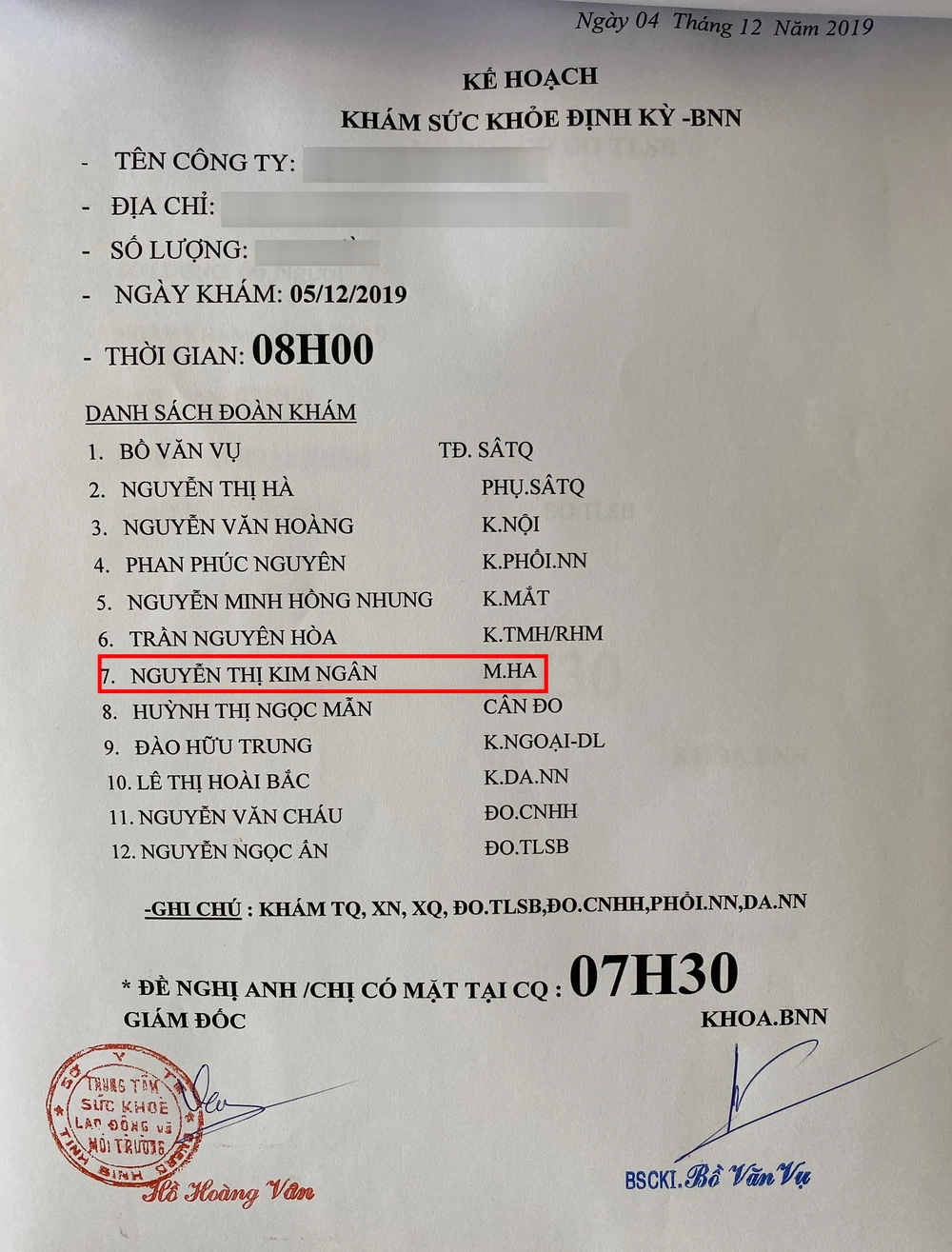 Như PLO đã đưa tin, bà Nguyễn Thị Kim Ngân là một nhân viên tạp vụ tại Trung tâm Sức khỏe lao động và Môi trường tỉnh Bình Dương. Người này cũng không có bằng cấp chuyên môn, chứng chỉ hành nghề nhưng lại được giám đốc trung tâm cho đi khám sức khỏe định kỳ cho công nhân ở các công ty.