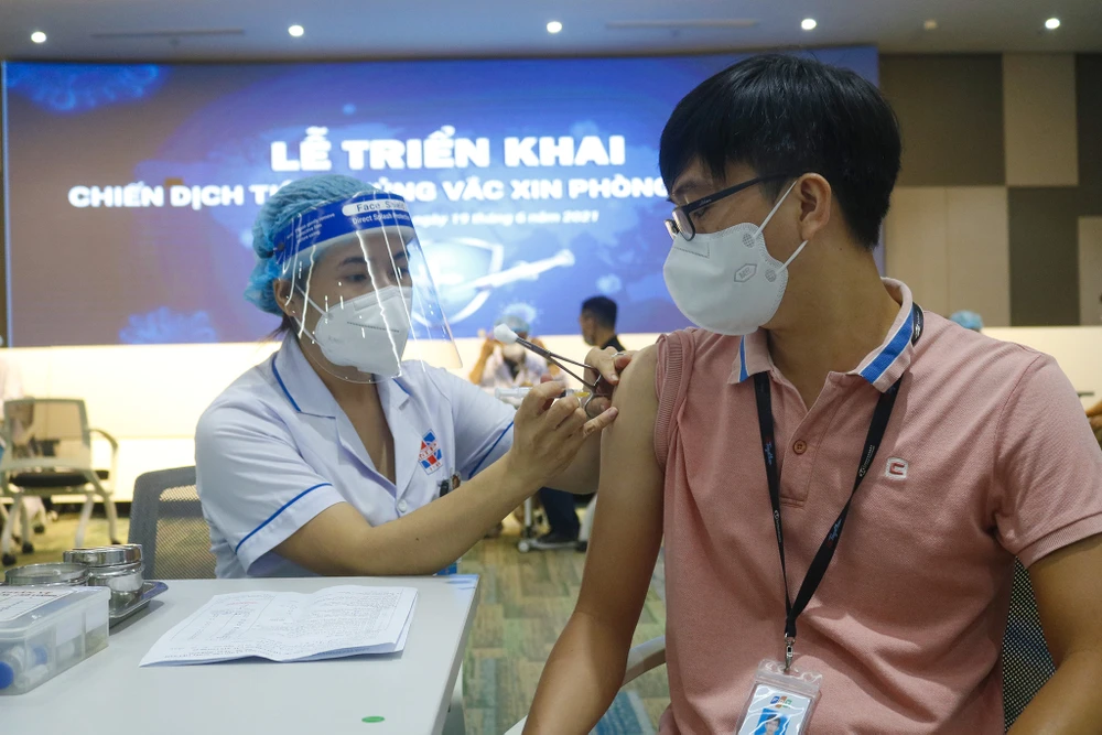 Ngành y tế tiêm vaccine COVID-19 cho nhân viên ở khu công nghệ cao TP Thủ Đức, TP.HCM. Ảnh: NGUYỆT NHI