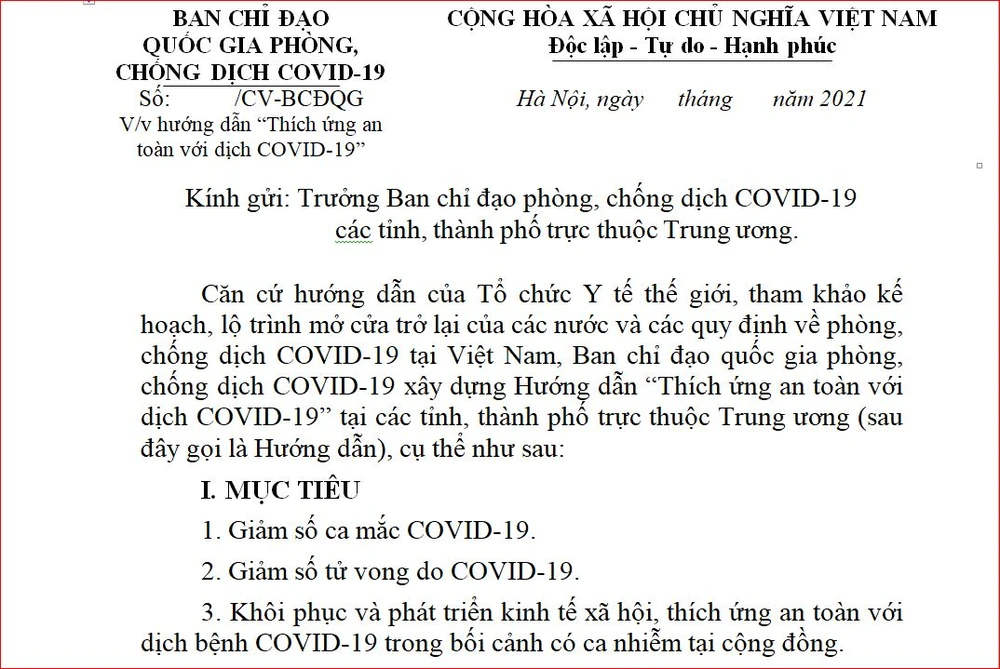 Đây là hướng dẫn khung của Ban Chỉ đạo quốc gia, Ban Chỉ đạo các tỉnh sẽ tham mưu để địa phương bổ sung các biện pháp phù hợp. Quá trình thực hiện sẽ phải có giám sát, đánh giá, tiếp tục điều chỉnh cho phù hợp từng giai đoạn.