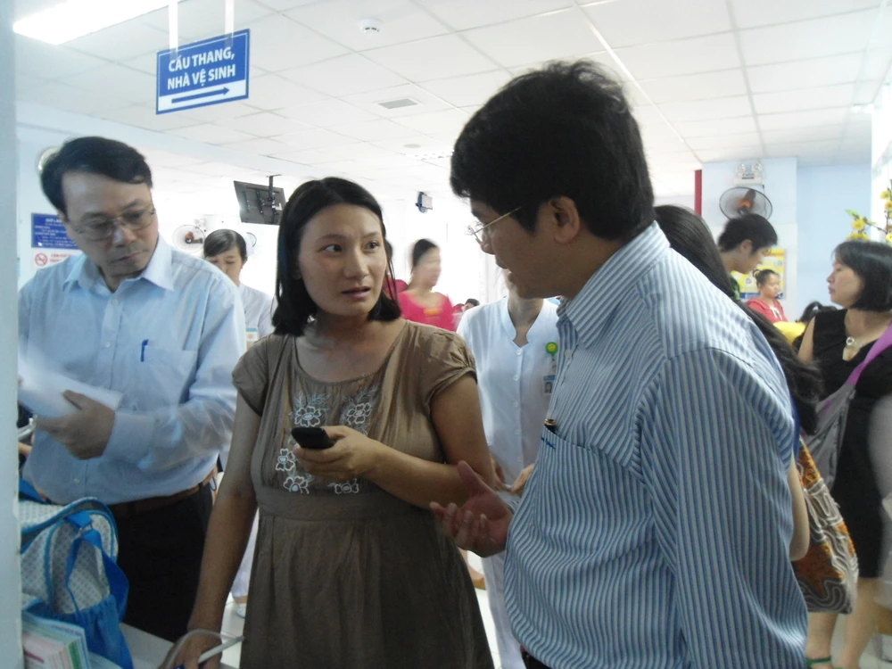 PGS-TS Nguyễn Tuấn Hưng, Phó Vụ trưởng Vụ tổ chức cán bộ, Bộ Y tế, hỏi thăm bệnh nhân tại BV Từ Dũ