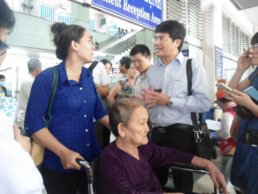 PGS-TS Nguyễn Tuấn Hưng, Phó Vụ trưởng Vụ tổ chức cán bộ, Bộ Y tế, hỏi thăm bệnh nhân tại BV Chợ Rẫy
