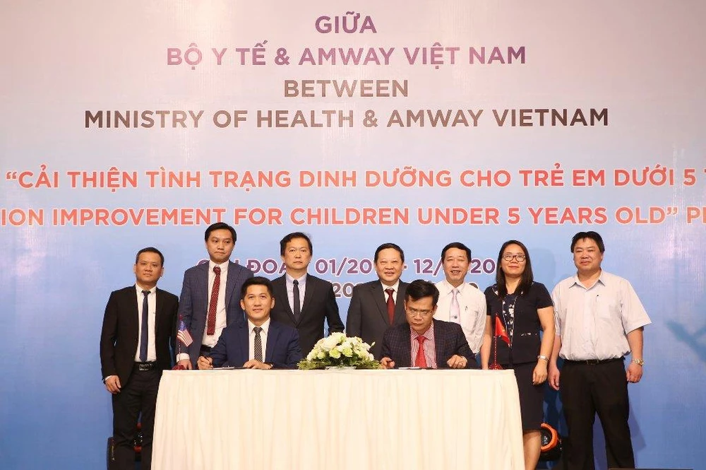 Đại diện Bộ Y tế và Amway Việt Nam ký kết biên bản thỏa thuận hợp tác.
