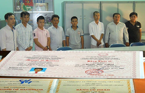 Tối 12-1, các trinh sát Đội 4 PC45 đã đồng loạt bắt giữ, khám xét khẩn cấp 13 nghi can. Qua sàng lọc, đến nay PC45 ra quyết định tạm giữ hình sự chín đối tượng để điều tra về hành vi làm giả con dấu, tài liệu của các cơ quan, tổ chức. Cho đến khi bị bắt đường dây này đã làm trên 500 bằng cấp giả các loại từ bằng tiến sĩ, thạc sĩ, đại học đến nhiều bằng cấp, chứng chỉ nghề, ngoại ngữ… với giá dưới 9 triệu đồng/bằng.